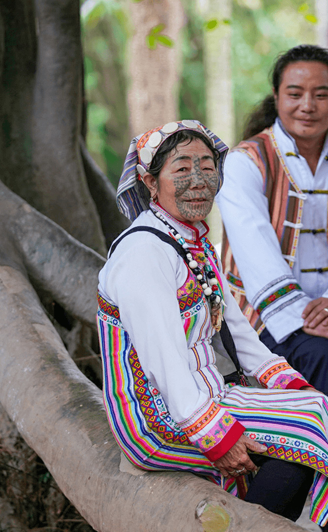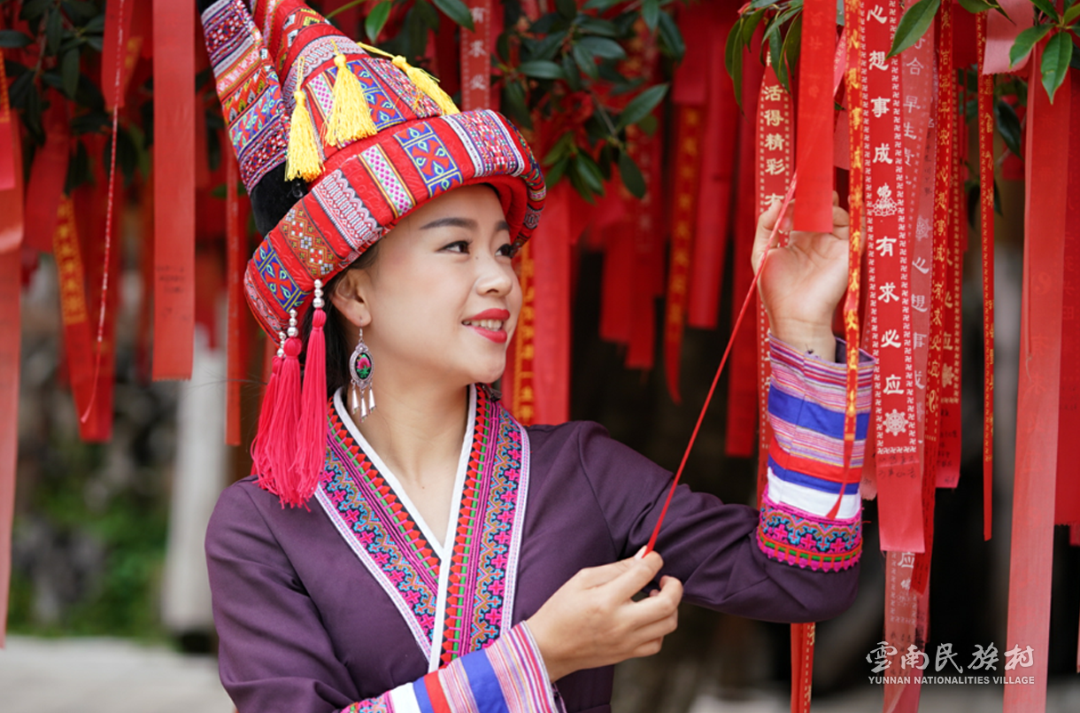 彝族在云南境內(nèi)約471萬(wàn)人,是省內(nèi)人口最多、分布最廣的少數(shù)民族,主要聚居在金沙江、元江流域和哀牢山、無量山腹地。彝族是一個(gè)能歌善舞的民族,民間打歌、跳樂之風(fēng)盛行,大三弦、跌腳舞久負(fù)盛名。火把節(jié)是彝族最具特色的民族節(jié)日。彝族村占地50余畝,三虎浮雕墻與虎頭內(nèi)祖師形象表現(xiàn)了彝族虎鷹文化。太陽(yáng)歷廣場(chǎng)圖騰柱上有太陽(yáng)、虎、火和八卦圖形象,周圍環(huán)繞著10個(gè)朝向不同的月球造型,外圓周有12生肖石雕。依山而建的“...
